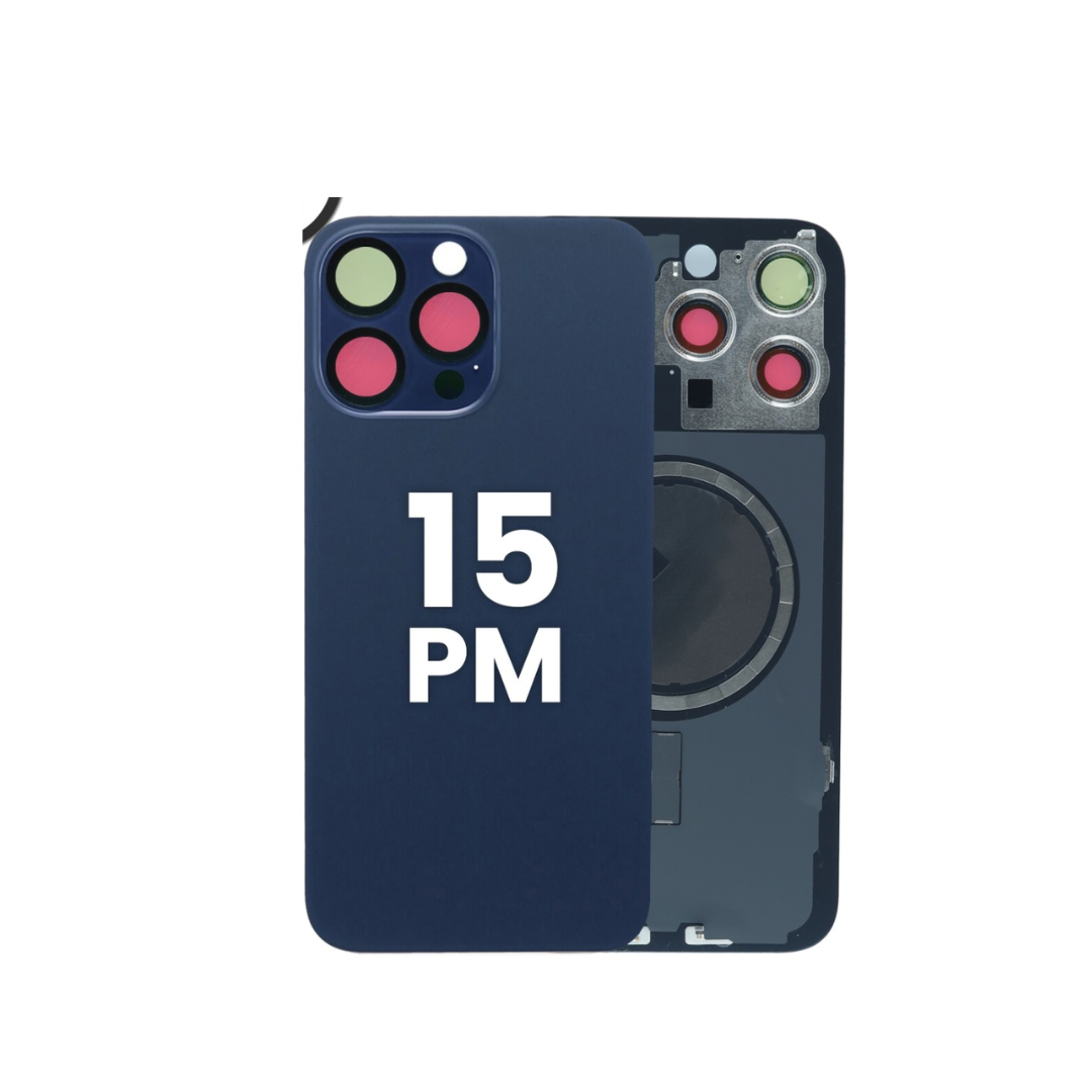 Cristal trasero con marco e imán MagSafe para iPhone 15 Pro Max (SIN LOGO) (AZUL TITANIO)